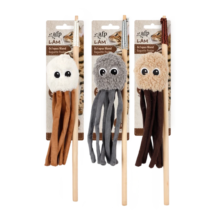 Hengel met daaraan een grappige octopus. De tentakels van de octopus zijn voorzien van krakend plastic met daaromheen onweerstaanbaar fleece.