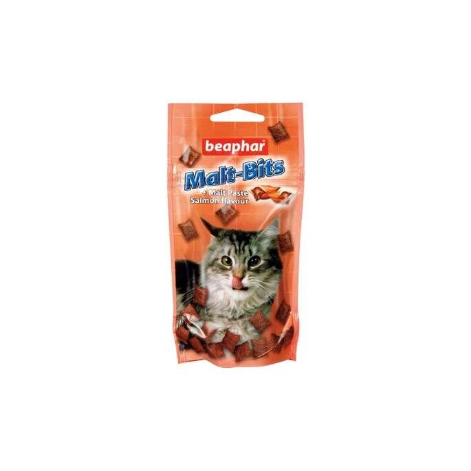 Zalm Bits is een gezonde en knapperige kattensnack voor tussendoor. Niet zomaar een lekkernij, maar gevuld met smakelijke Malt-haarbalpasta met zalmsmaak. Deze pasta bevordert een natuurlijke afvoer van ingeslikte haren. Dit product is gemaakt van natuurlijke ingrediënten, dit kan kleurafwijkingen tot gevolg hebben.