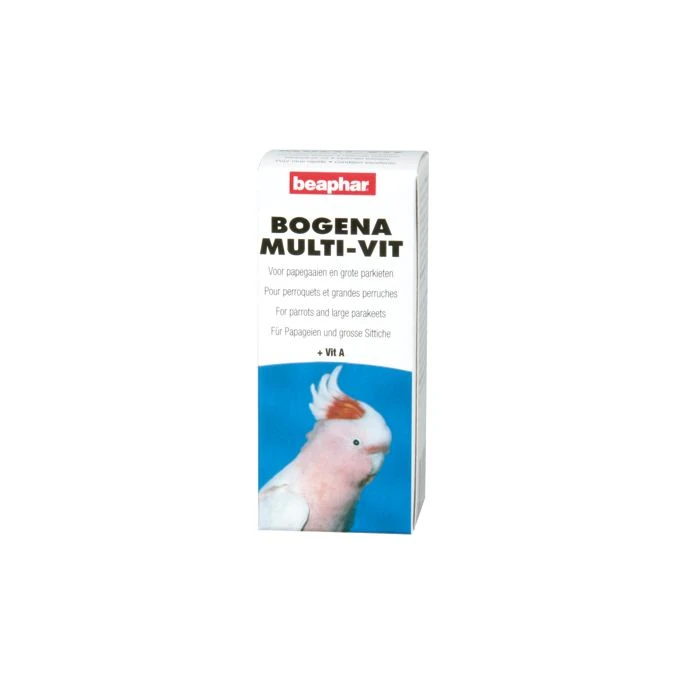 Multi-Vit papegaaien + grote parkiet bevat 12 verschillende soorten vitaminen waaronder de voor papegaaien en parkieten belangrijke vitamine A. Multi-Vit versnelt de rui, bevordert de conditie, geeft een gezonde glanzende bevedering en vult tekorten aan die kunnen leiden tot vederpikken.