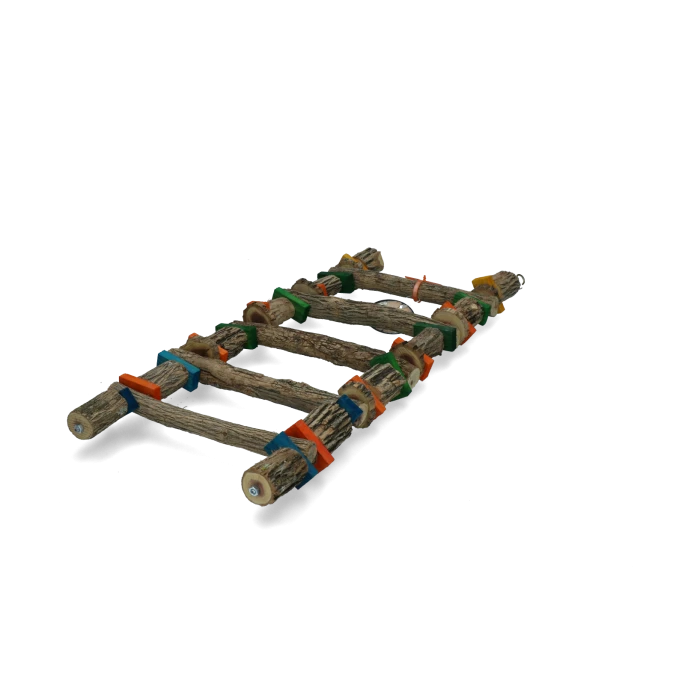 Deze kleurrijke ladder met een natuurlijke uitstraling is geschikt voor grote vogels. Eenvoudig op te hangen door de meegeleverde haakjes. Ook te gebruiken als in- en uitstaphulp.