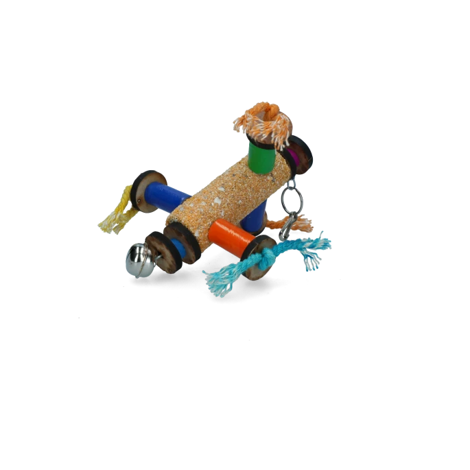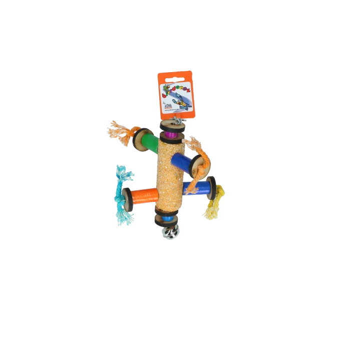 Leuk vogelspeelgoed met coral/zandstructuur cilinder en een belletje!