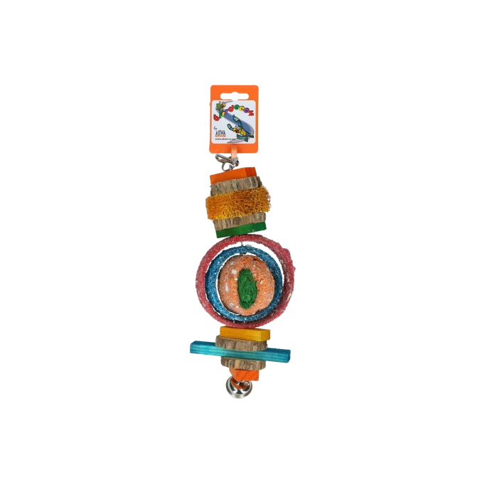 Draagt bij aan het onderhoud van de pootjes en snavel van uw vogel. Makkelijk te monteren met behulp van het karabijnhaakje. Bevat luffa, rondjes met zandstructuur, gekleurd hout en een leuke bel aan de onderzijde voor extra speelplezier.