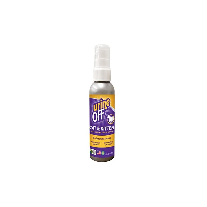 In tegenstelling tot andere reinigingsproducten breekt de natuurlijke inhoud van Urine Off de ureum en de urinezuur, die zich in urine bevinden, af. De hardnekkige urinezuurkristallen worden afgebroken en niet alleen met geurstoffen overdekt of uitgedroogd. Daardoor kan de urinegeur van uw gevoelige kat niet meer worden waargenomen, waardoor hij niet meer de drang krijgt op dezelfde plek te urineren of deze af te bakenen. Bovendien zit er in de samenstelling een feromonenblokker, die het opnieuwe afbakenen van uw kat nog eens extra tegenhoudt.