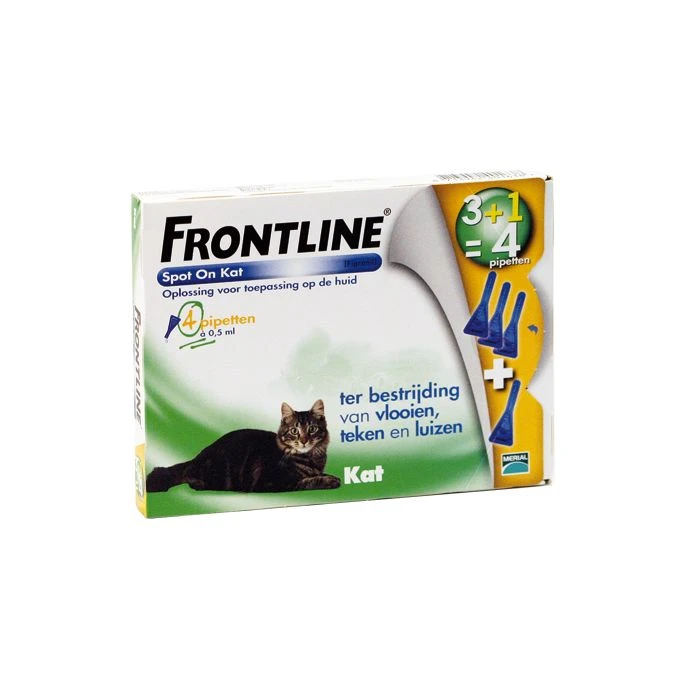 Frontline Spot-on is gemakkelijk te gebruiken: u moet de inhoud van de pipet op de huid tussen de schouderbladen van uw kat aanbrengen. Vermijd contact met uw handen. Te gebruiken vanaf de leeftijd van 10 weken oud. Ook toe te passen bij drachtige of zogende katten.