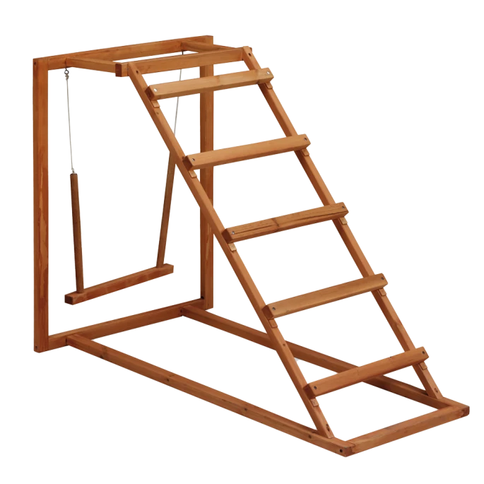 Speelgoed om kippen actief te houden. Ze kunnen erop klimmen, zitten, of schommelen.