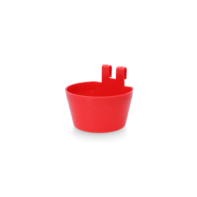 Veelzijdig inzetbaar drink- of voerbakje met 2 haken. Kan eenvoudig opgehangen worden aan diverse typen gaas.