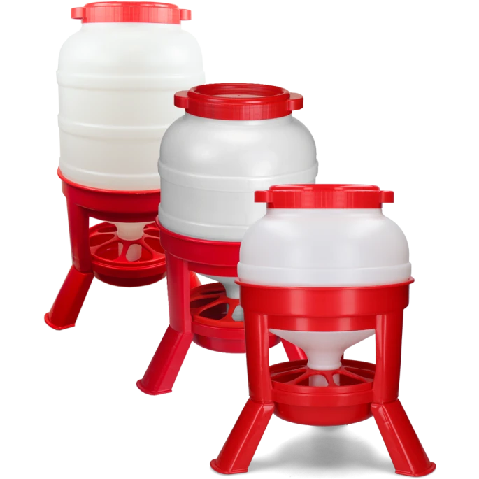 Met de handige Pluimvee voertoren Hopper op pootjes zijn uw kippen, fazanten of andere dieren altijd voorzien van genoeg voedsel. De toren beschikt over een kenmerkende rode kleur en is voorzien van extra stevige poten, gemaakt van kunststof. Aan de bovenkant van de voertoren is het voer bij te vullen en er is een handige anti-morsrand bevestigd, waardoor er geen voer verspild wordt. Deze voertoren sluit zich perfect aan bij uw wensen en situatie, aangezien de toren in varianten van 20, 30 en 40 liter verkrijgbaar zijn.