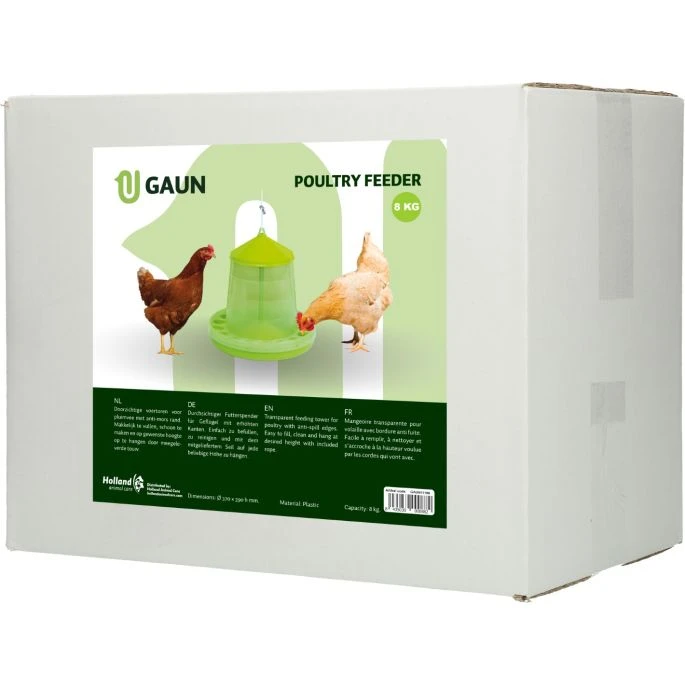 De Pluimvee voertoren Bio Green Lemon is gemaakt van duurzaam en transparant bio-kunststof. Hierdoor is het altijd mogelijk om in één oogopslag te zien of er nog genoeg voer in de voertoren zit. Daarnaast beschikt de toren over handige anti-morsranden, waardoor er nooit voer buiten de toren kan vallen.