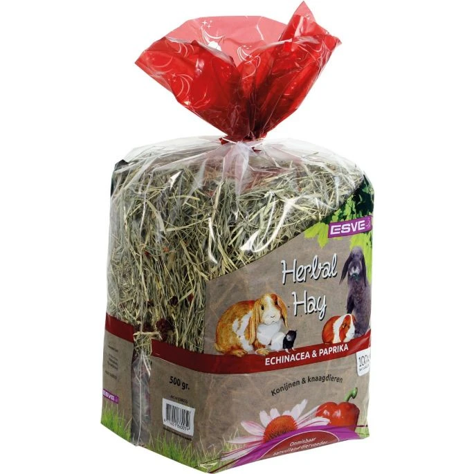 Herbal Hay van ESVE is een zeer smakelijke kruidenhooi voor knaagdieren en konijnen. Het is een mengeling van een aantal geselecteerde grassoorten afkomstig van uitgestrekte Europese weides. Lekker en gezond ruwvoer voor uw huisdier, ze zouden het in de vrije natuur zelf ook kiezen!