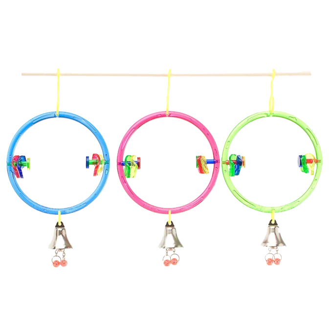 Het vogelschommeltje is gemaakt van kunststof. Onderaan de schommel hangt een belletje. Aan de zijdes van de schommel hangen kunststof ringetjes waar de vogel mee kan spelen.