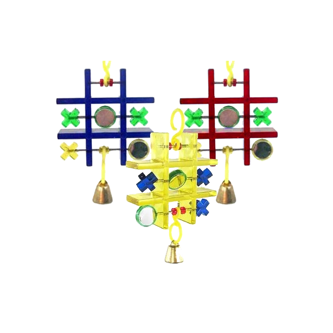 De Tic Tac Toe zal uw vogel vermaken en stimuleren om te bewegen. Het speeltje bevat draaiende kleurrijke Xjes en draaiende spiegeltjes (O’s). Het design heeft een mooi doorschijnend frame met een bel aan de onderzijde. Dit speelgoed zal uw vogel levendig en energiek houden.