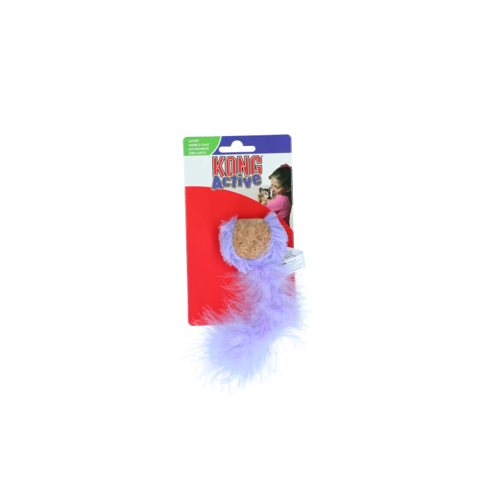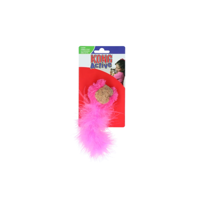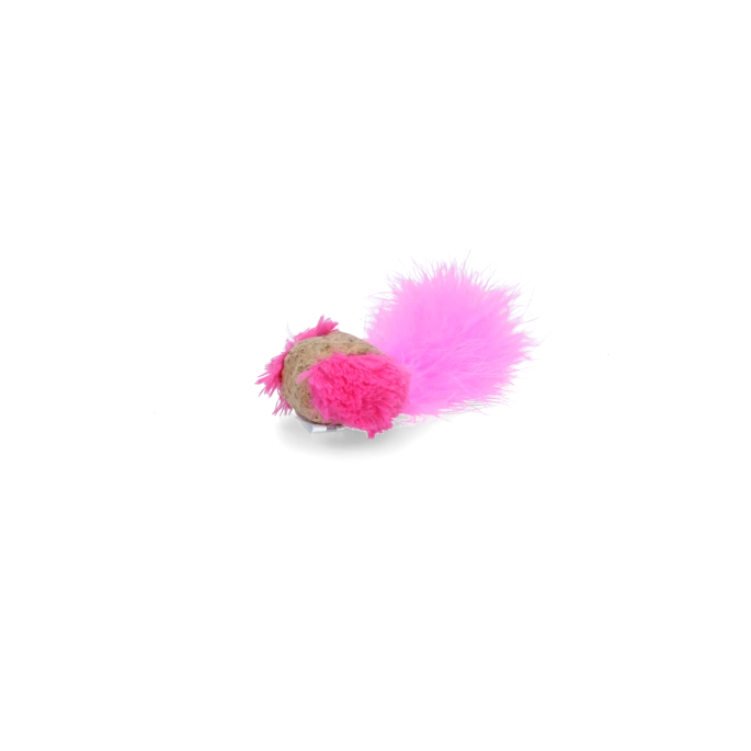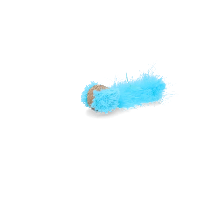 De combinatie van kurk, veren en catnip maakt dit speelgoed uniek.
