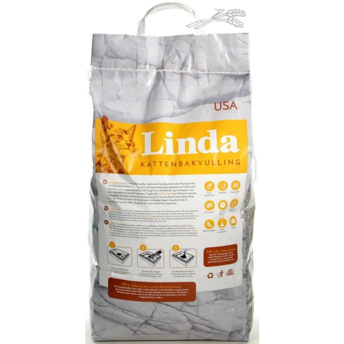 Linda USA is een superkwaliteit kattenbakvulling, die absobeert voordat onaangename geurtjes ontstaan.