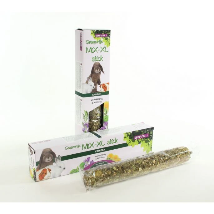 MiX-XL stick graanvrij met kruiden is een aanvullend diervoeder voor knaagdieren & konijnen. Deze grote en smakelijke stick is een heerlijke en graanvrije traktatie, speciaal afgestemd op de behoefte van knaagdieren en konijnen.