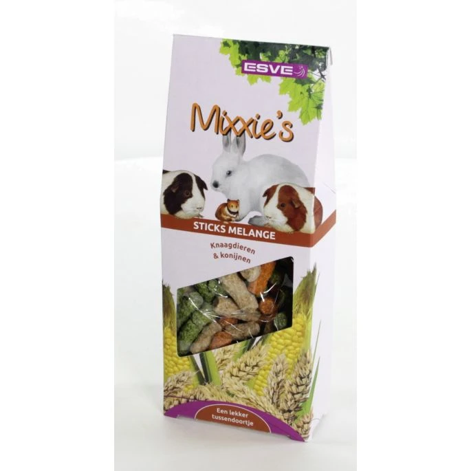 Knaagdier Mixxie’s zijn dé beloning voor elke dag. MIX-XIE’s zijn heerlijke en gezonde tussendoortjes met belangrijke voedingsstoffen, die uw knaagdier verwennen. Bevordert tevens de spijsvertering en knaagbehoefte. Aanvullend diervoeder voor hobby konijnen en knaagdieren.