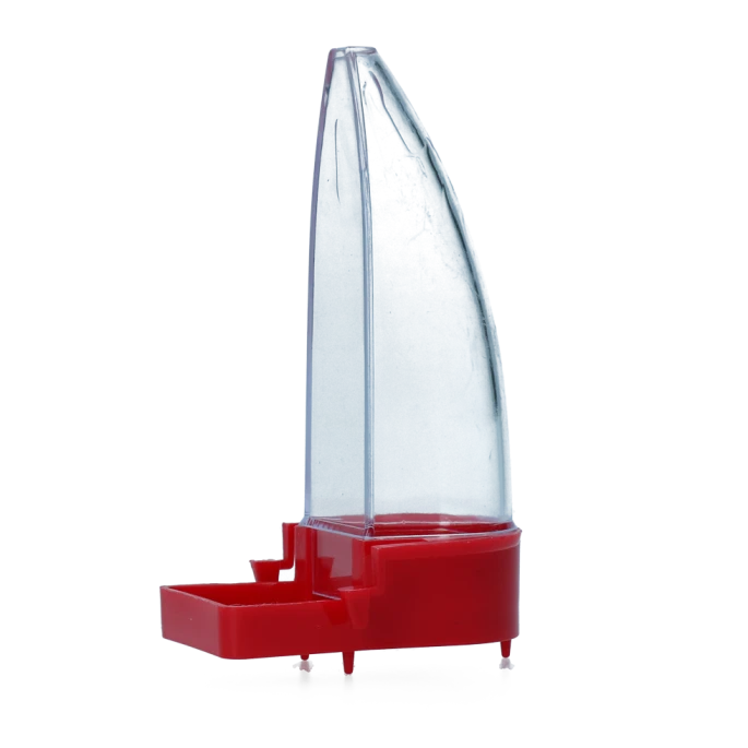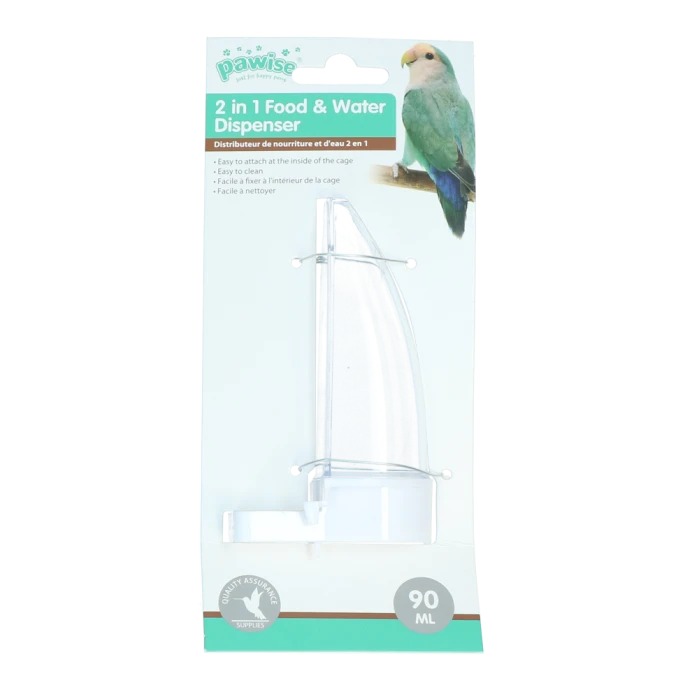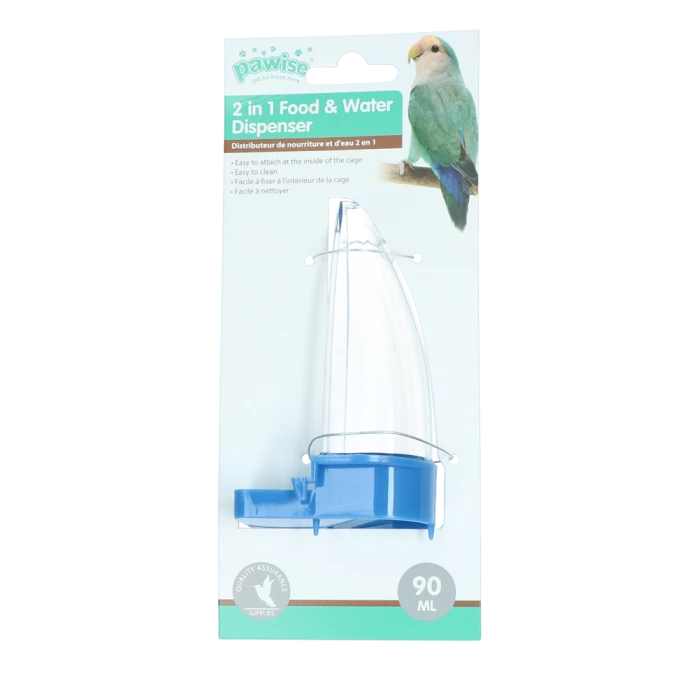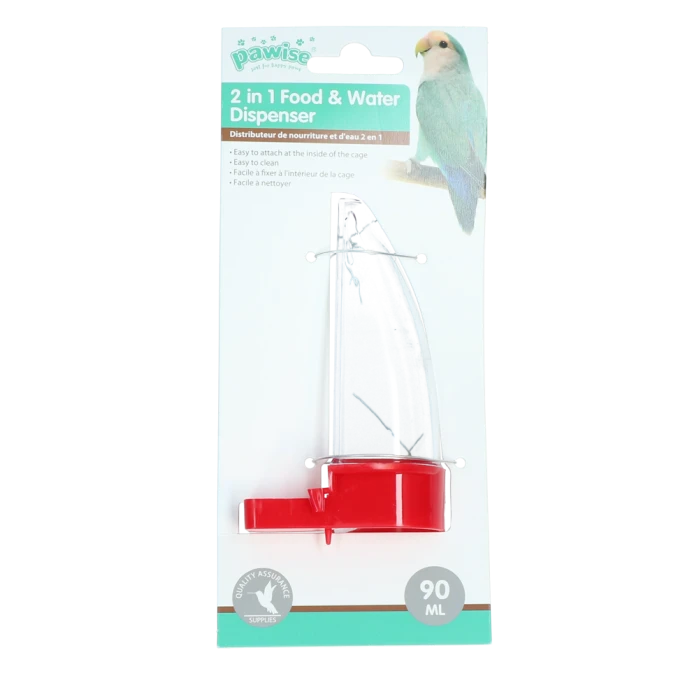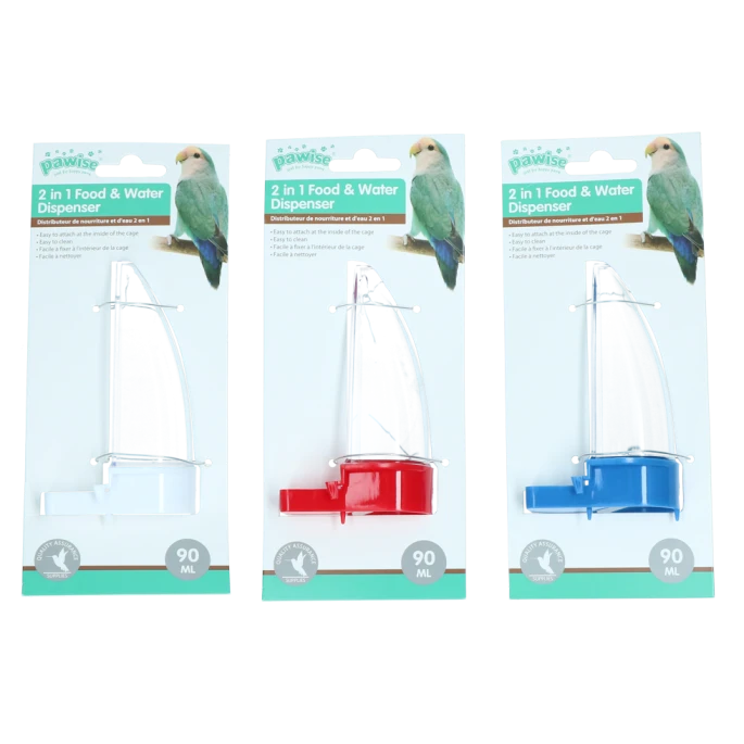 Vul het met voer of water, klik het onderste deel erop en hang het in de kooi.