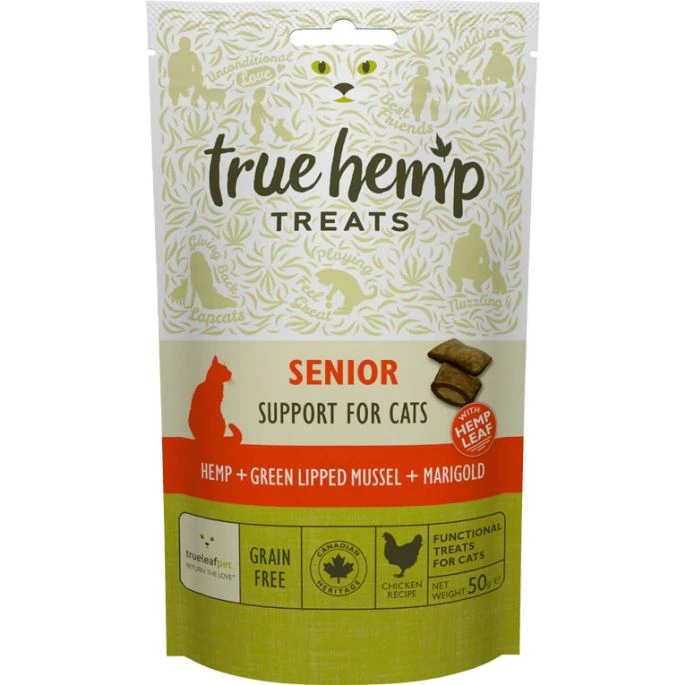 Het is moeilijk om onze kattenvrienden ouder en trager te zien worden en daarom hebben we onze innovatieve True Hemp™ SENIOR-formule ontwikkeld ter ondersteuning van katten boven de 7 jaar. Deze unieke formule bevat hennep en andere werkzame bestanddelen voor een synergistisch werking om de gewrichtsfunctie en de normale reactie van het lichaam op ontstekingen te ondersteunen.